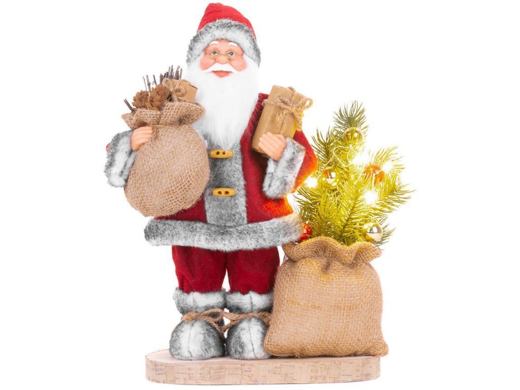 2. TRIEDA Dekorácia MagicHome Vianoce, Santa s taškou a stromčekom, LED, 3xAAA, 30 cm