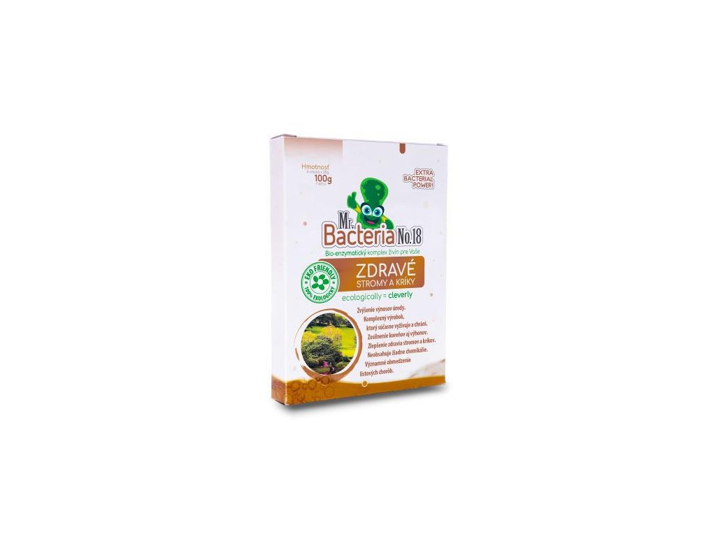 Prípravok Mr. Bacteria No. 18. je zmes pôdnych baktérií kombinovaná s vybranou mikrovýživou pre podporu rastu a zdravia rastlín. Baktérie obsiahnuté v produkte rozkladajú pôdne minerály čím ich robia ľahko rozpustnými a prístupnejšími pre využitie ich následnéstromami a kríkmi ako výživu. Vytláčajú patogény, rastlinu živia a podporujú jej zdravý rast. Pre rastlinu sa stane dostupnejším najmä fosfor, draslík a železo. Výrazne stimuluje prirodzenú odolnosť proti listovým chorobám (múčnatka, plesne, huby ..), čo má za následok zosilnenie koreňového systému aj celej nadzemnej časti stromov a kríkov.