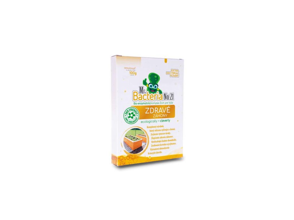 Prípravok Mr. Bacteria No. 21 je zmes pôdnych baktérií kombinovaná s vybranou mikrovýživou pre podporu rastu a posilnenie zdravia záhonových rastlín (ovocie, zelenina, kvety). Baktérie obsiahnuté v produkte rozkladajú pôdne minerály čím ich robia ľahko rozpustnými a prístupnejšími pre ich následné využitie rastlinami. Vytláčajú patogény, záhon vyživujú a podporujú jeho zdravý rast. Pre záhon sa stane dostupnejším najmä fosfor, draslík a železo. Výrazne stimuluje prirodzenú odolnosť proti listovým chorobám (múčnatka, plesne, huby ...), zosilnejú korene ako aj celá nadzemná časť rastliny, rastlina lepšie a viac plodí.