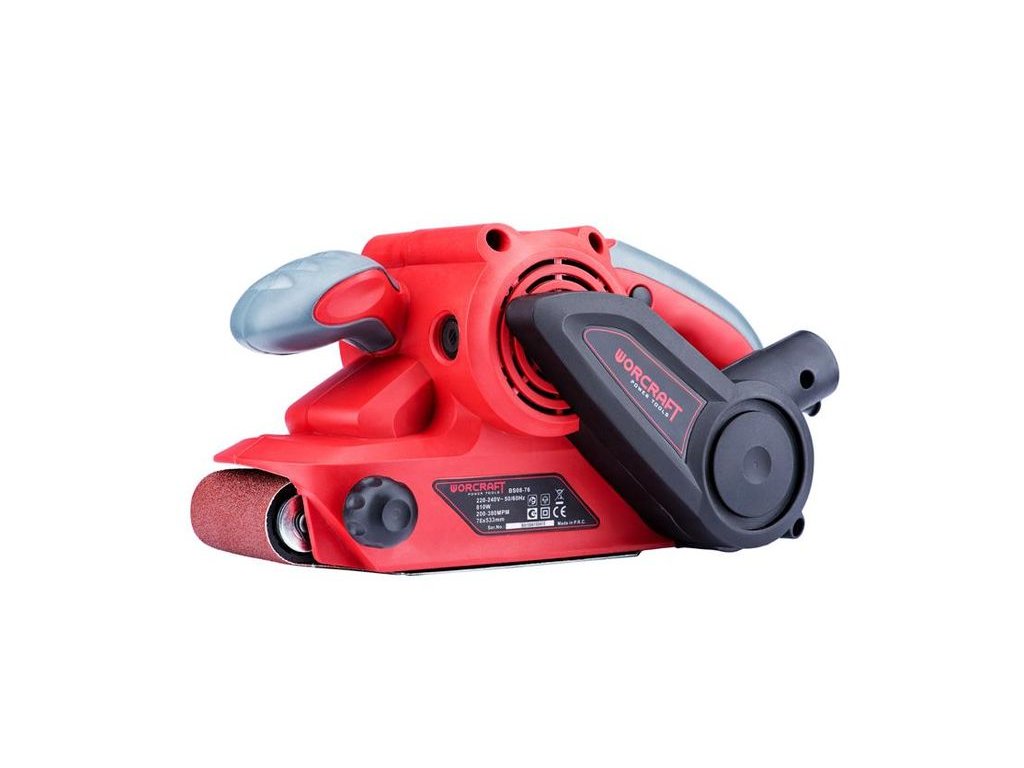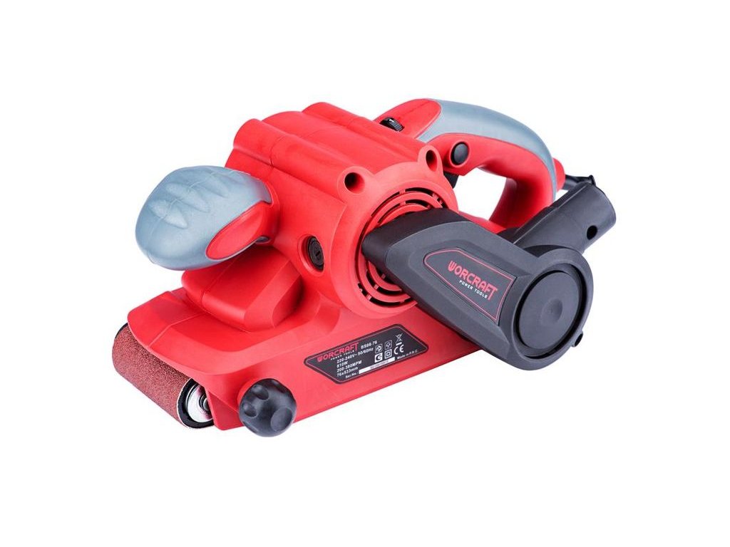 Výkonná elektrická pásová brúska Worcraft BS08-76 s príkonom 810 W je skvelým pomocníkom každého kutila pri suchom brúsení. Je vhodná na odstraňovanie materiálov z dreva, plastu, kovu, atď. O komfortnú prácu s pásovou brúskou sa postarajú protišmykové pogumované rukoväte, jedna menšia vpredu a jedna veľká vzadu.