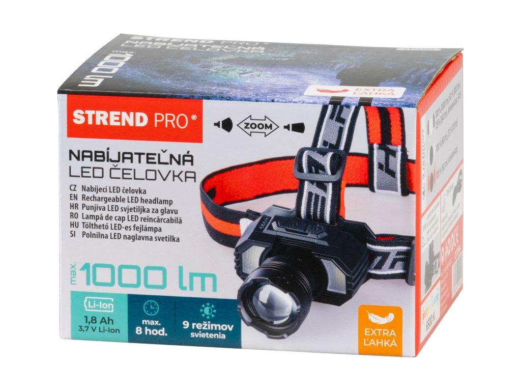 Čelovka Strend Pro Headlight XL121807, LED, 1000 lm, ZOOM, 1800 mAh, USB nabíjanie