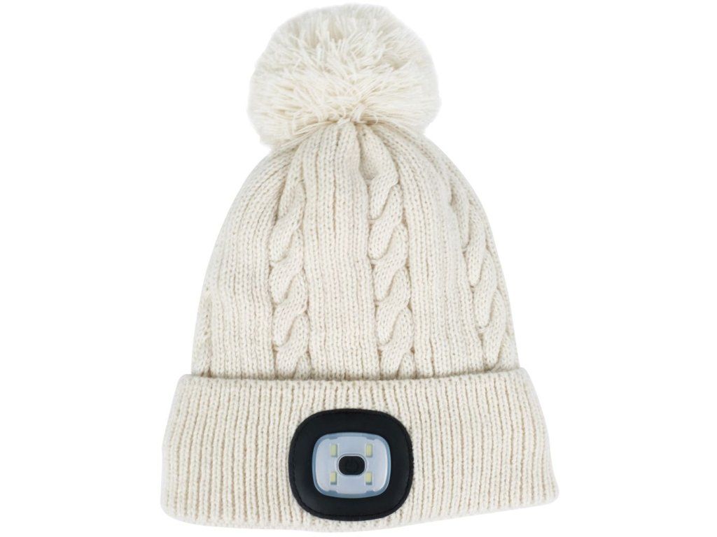 Buďte štýlový s pohodlnou a teplou čiapkou Strend Pro! Čiapka v bielej farbe s brmbolcom má elegantný dizajn, takže sa hodí ku všetkému. Veľkosť L. Nabíjanie LED svetla pomocou USB portu. 3 stupne intenzity svietenia. Možnosť prania.