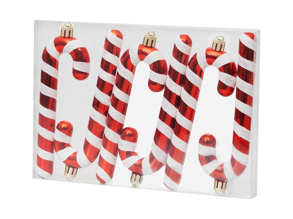 Dekorácia MagicHome Vianoce, Vianočná lízanka, bielo-červená, 12,5 cm, bal 6ks