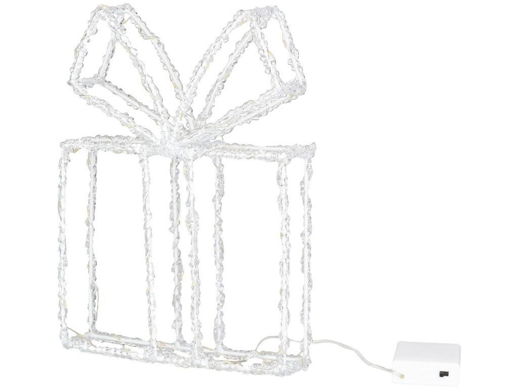 Dekorácia MagicHome Vianoce, darček, akryl, 80xLED teplá biela, 21x5x28 cm, 2xAA