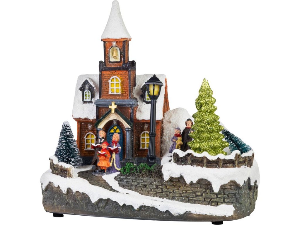 Dekorácia MagicHome Vianoce, kostol, plast, 1xLED teplá biela, 21x14.5x20.8 cm, 3xAA