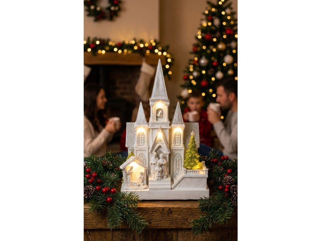 Dekorácia MagicHome Vianoce, Kostol s betlehemom, 6 LED biela, 3xAA, interiér, 17x13x25 cm