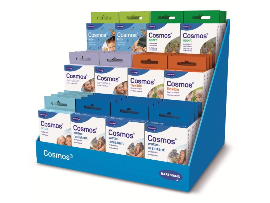 Displej Cosmos Standart prináša praktický a prehľadný mix najpredávanejších delených náplastí, vhodný pre každodenné použitie. Vďaka rôznorodosti typov poskytuje riešenie na menšie poranenia, odreniny či rezné rany pre celú rodinu.