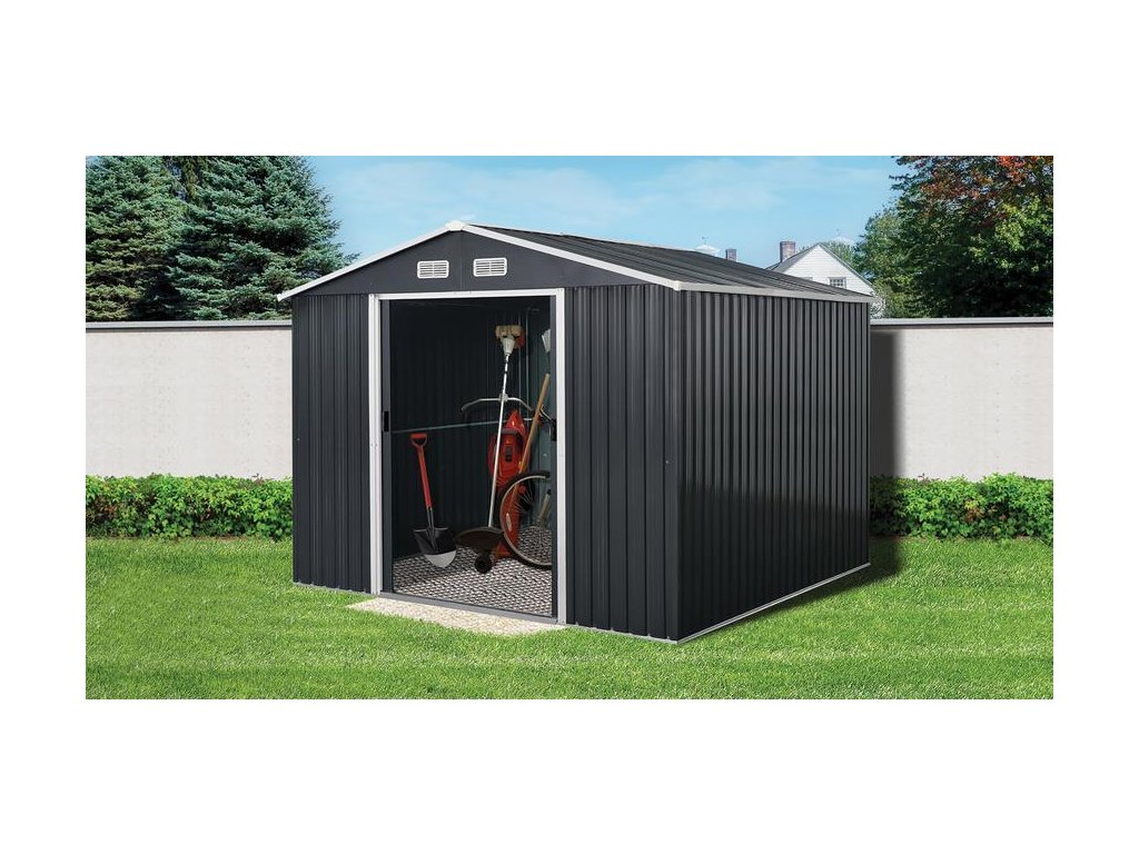 Záhradný domček Strend Pro poskytuje dostatočne veľký priestor na uskladnenie záhradného náradia, vybavenia, nábytku či bicyklov. Je vyrobený z vysokokvalitného kovu, ktorý je o 20% hrubší ako pri bežných záhradných domčekoch a zároveň je odolný voči korózii. Otváranie pomocou dvojitých posuvných dverí. Disponuje 4 ventilačnými otvormi pre lepšie prúdenie vzduchu. Skvele sa hodí na akýkoľvek dvor, kde plní nielen praktickú, ale aj estetickú funkciou. Možnosť dokúpenia podlahovej konštrukcie. Farba: antracit. Rozmery: 301x303x214 cm. Rozmery dverí: 105x170 cm. Hrúbka lakovaného plechu: 0,3 mm, hrúbka pozinkovaného rámu: 0,6 mm.