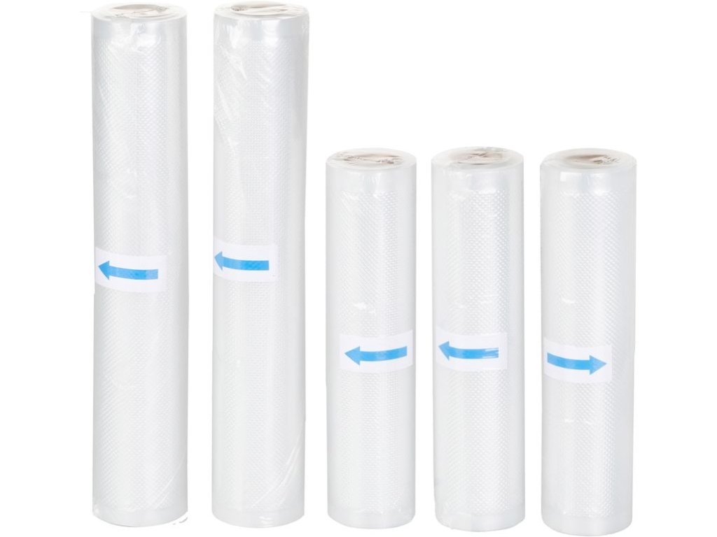 - Praktická sada: Obsahuje 3 rolky s rozmermi 20x300 cm a 2 rolky s rozmermi 28x300 cm, čo poskytuje flexibilitu pre balenie rôznych veľkostí potravín.