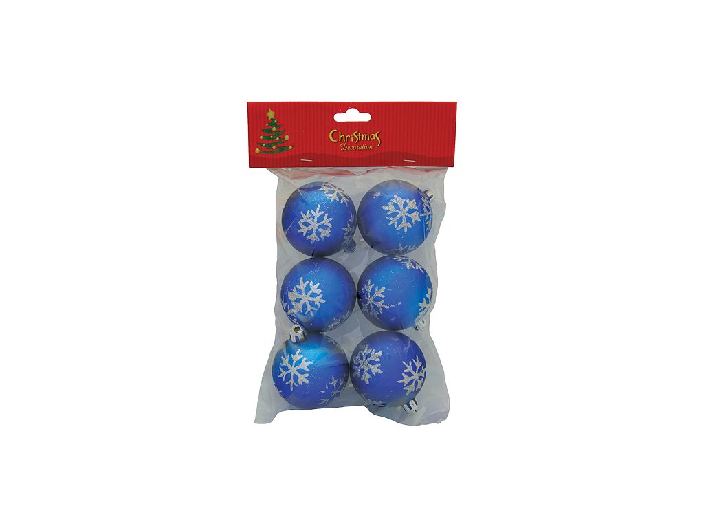 Gule MagicHome Vianoce, 6 ks, modré so striebornými vločkami, 6 cm