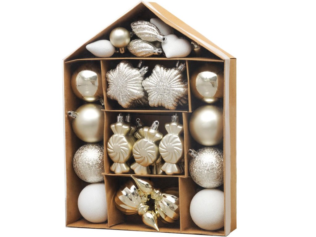 Súprava ozdôb na stromček slúži na slávnostné ozdobenie vianočného stromčeka. Pozostáva z 50 ks ozdôb (gule, hviezda, girlanda,...