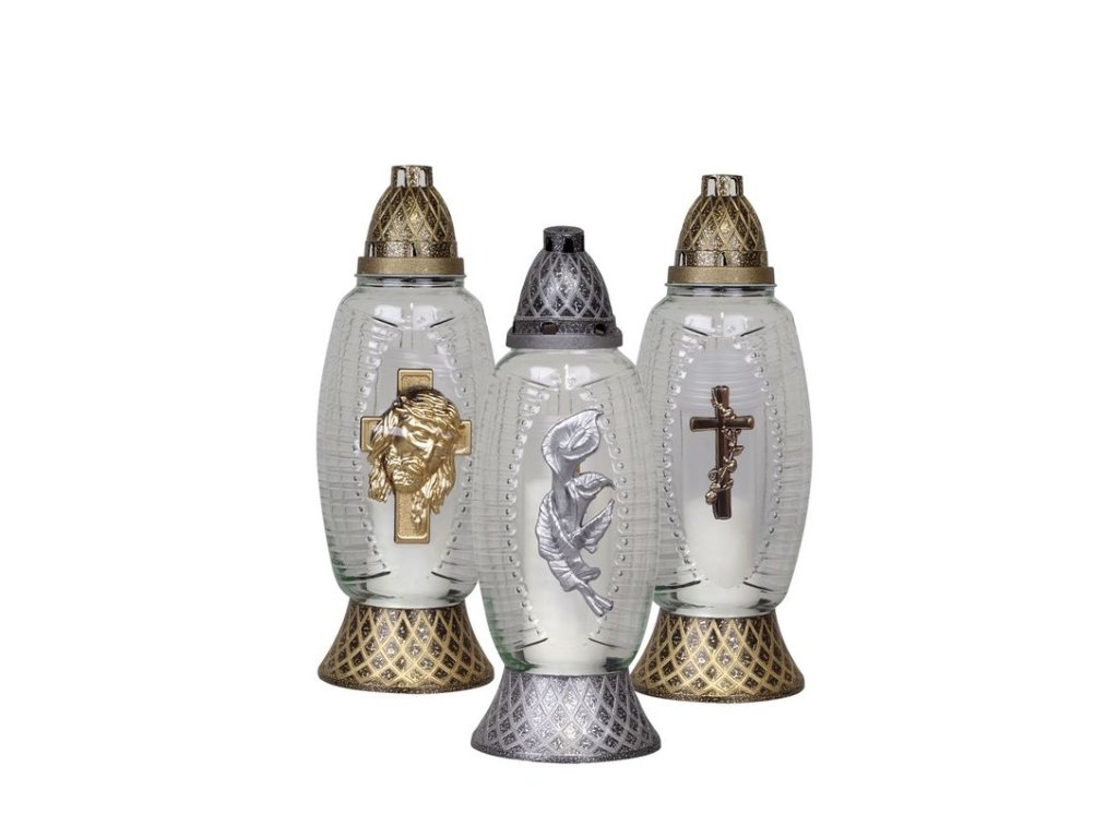 Kahanec Cross predstavuje spojenie klasiky a úctyhodného dizajnu. Vyrobený z kvalitného dekoratívneho skla so zdobenou podstavou a viečkom, je ideálnym doplnkom na cintorínske pietne miesta. Vďaka výške 35 cm a dobe horenia až 40 hodín ponúka dlhodobé a dôstojné pripomenutie spomienky na vašich blízkych.