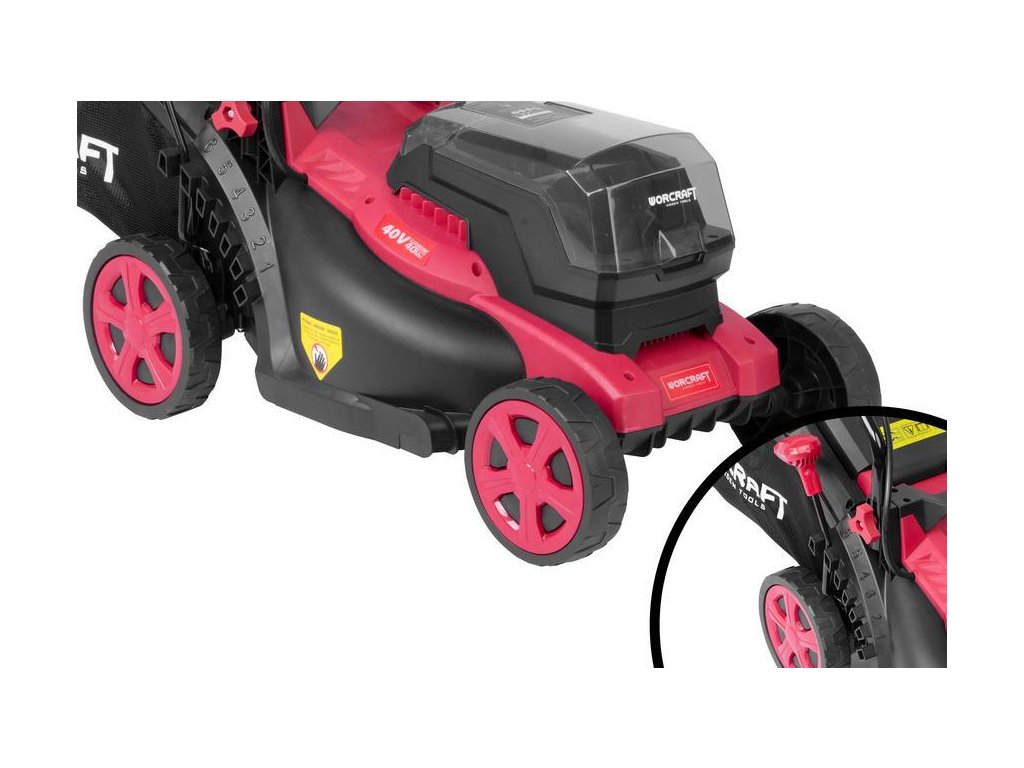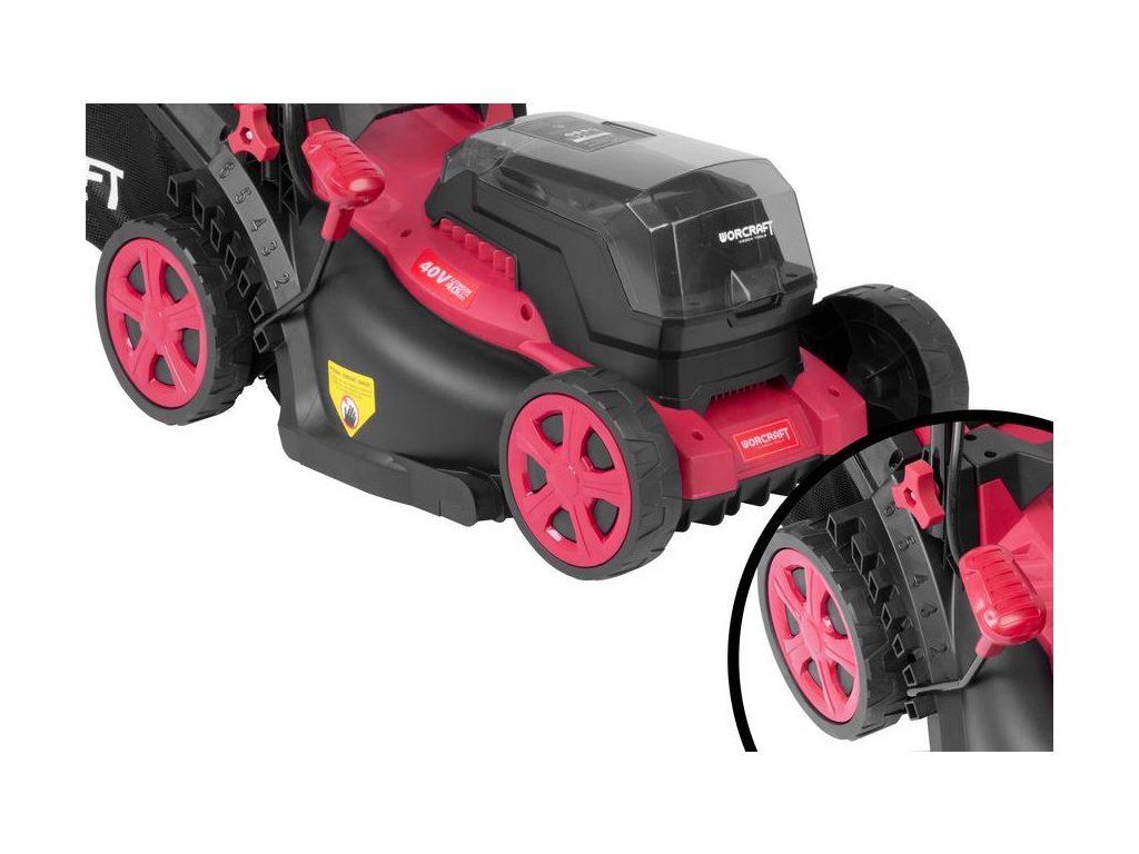 Kosačka Worcraft CLM-S40Li je akumulátorová kosačka, ktorá kombinuje výhody elektrických kosačiek. Zdrojom energie sú dva kvalitné Li-ion akumulátory. Kosačka pracuje rýchlosťou až 2600 otáčok/ min. Šírka záberu pri kosení dosahuje 34 cm a rezná výška je 25 až 75 mm/ 6 stupňov. Akumulátorová kosačka disponuje zberným košom s objemom 35 litrov. Pokosená plocha na jedno nabitie akumulátora predstavuje až 250 m2. Balenie obsahuje 2x akumulátor 4.0 Ah a nabíjačku.