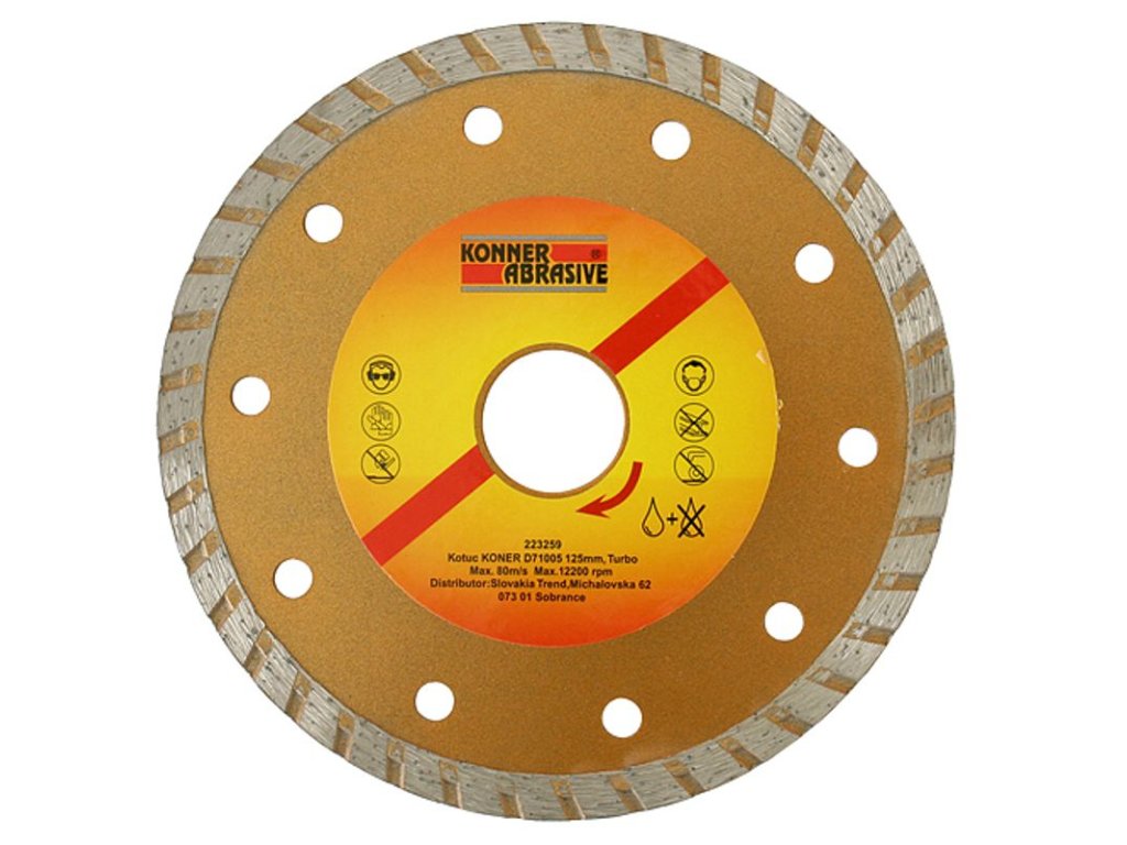 Diamantový kotúč KONNER je vhodný pre domácich kutilov, ale aj pre profesionálnych remeselníkov. Vhodný je na mokré aj suché rezanie. Má široké využitie - kameň, tehly, murivo, betón, železobetón, keramika, obklady, dlažba, mramor a strešná krytina. Jeho priemer je 125 mm a maximálne povolené otáčky sú 12 200 rpm.