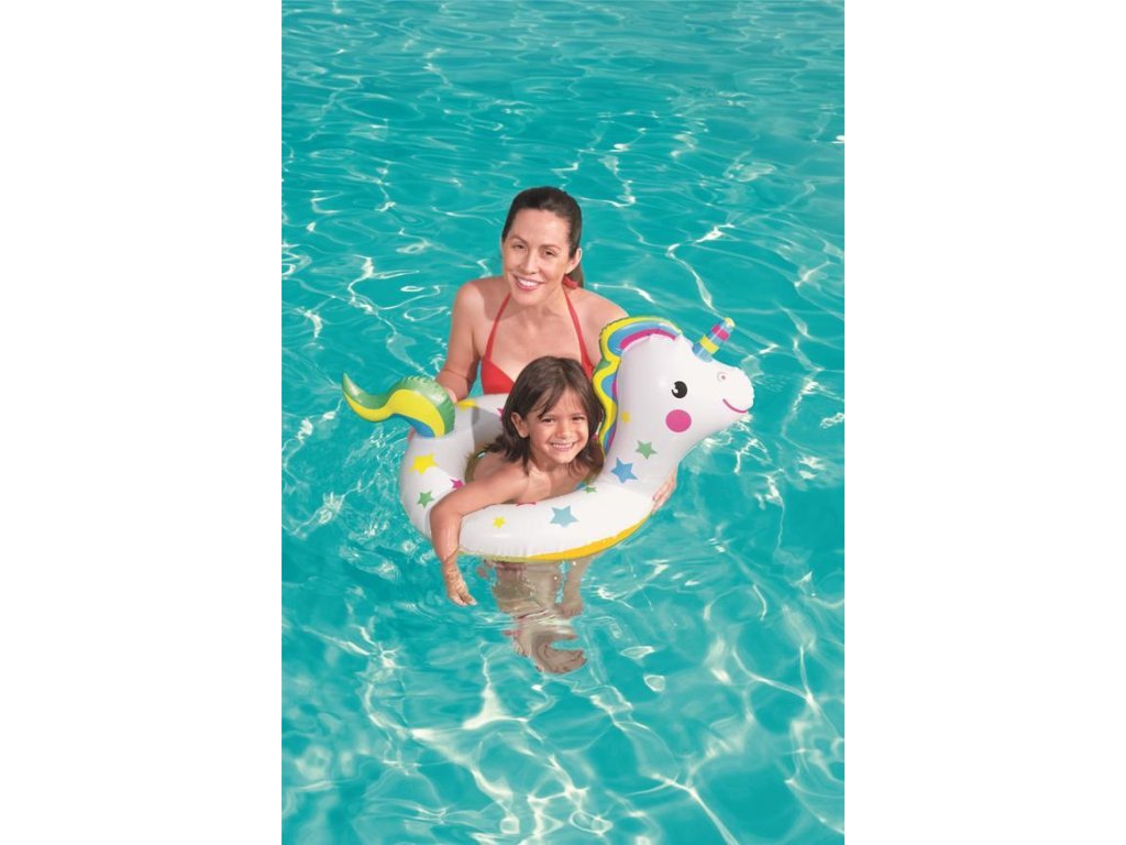 Zábavný nafukovací kruh Bestway® 36128 pre deti od 3 do 6 rokov v tvare zvierat prinesie vašim deťom kopec zábavy počas horúcich letných dní.