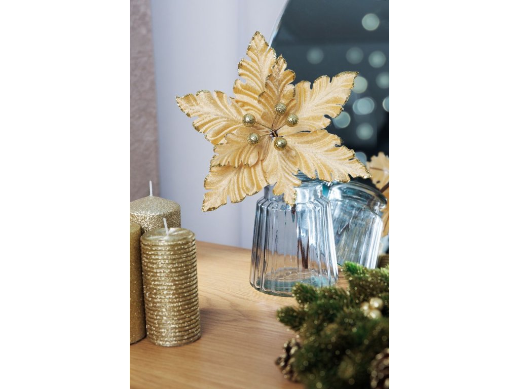 Kvet MagicHome Vianoce, Poinsettia, zlatá, 30 cm, veľkosť kvetu: 20,5 cm