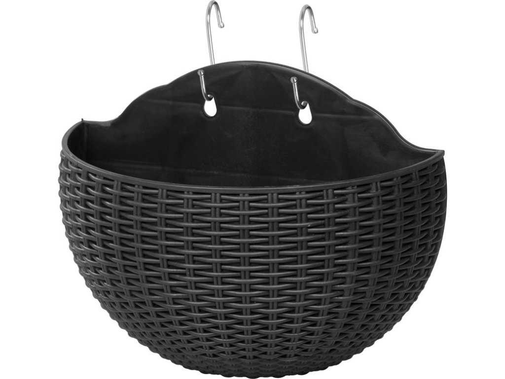 Kvetináč Strend Pro, s dvoma háčikmi, farba čierna, 26x14x20 cm