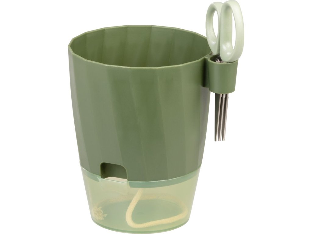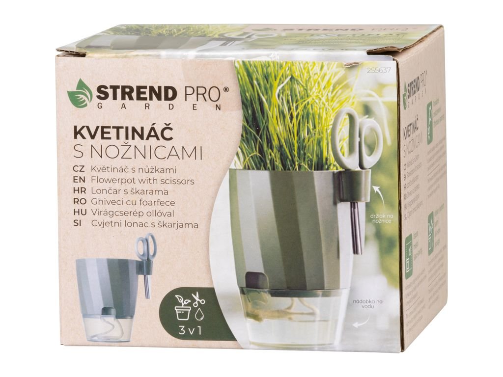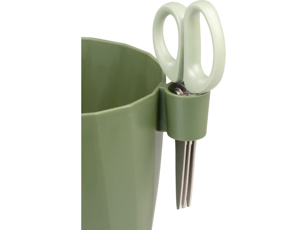 Kvetináč Strend Pro so záhradníckymi nožnicami vzelenej farbeje praktickým riešením pre každého pestovateľa byliniek a menších rastlín. Vďaka kompaktným rozmerom15,5 × 12,5 × 16 cmje ideálny na okenné parapety, kuchynské linky či balkóny.