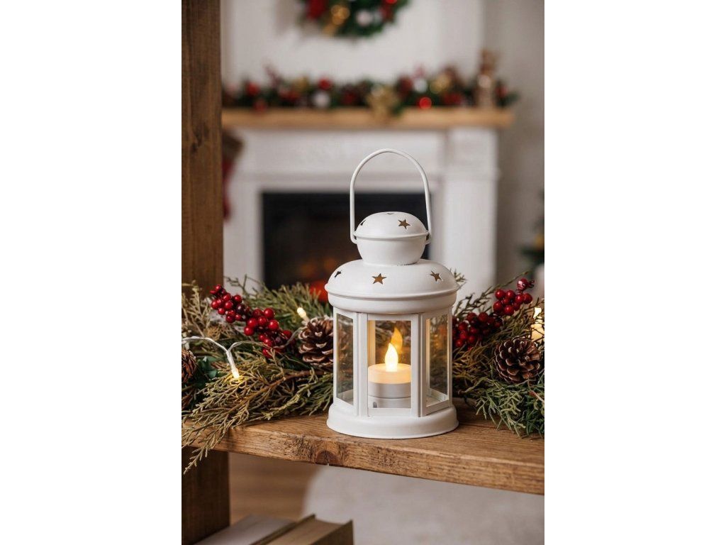Lampáš MagicHome Vianoce, biely, s LED sviečkou teplá biela, 10x15/20 cm, pohyblivý plameň
