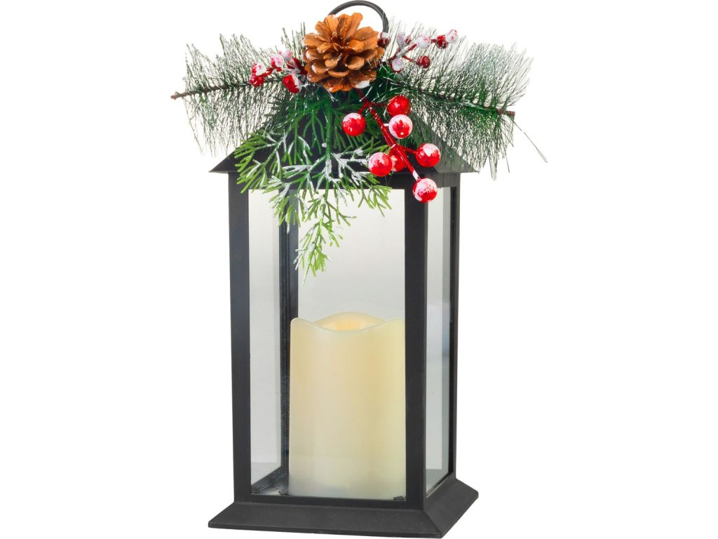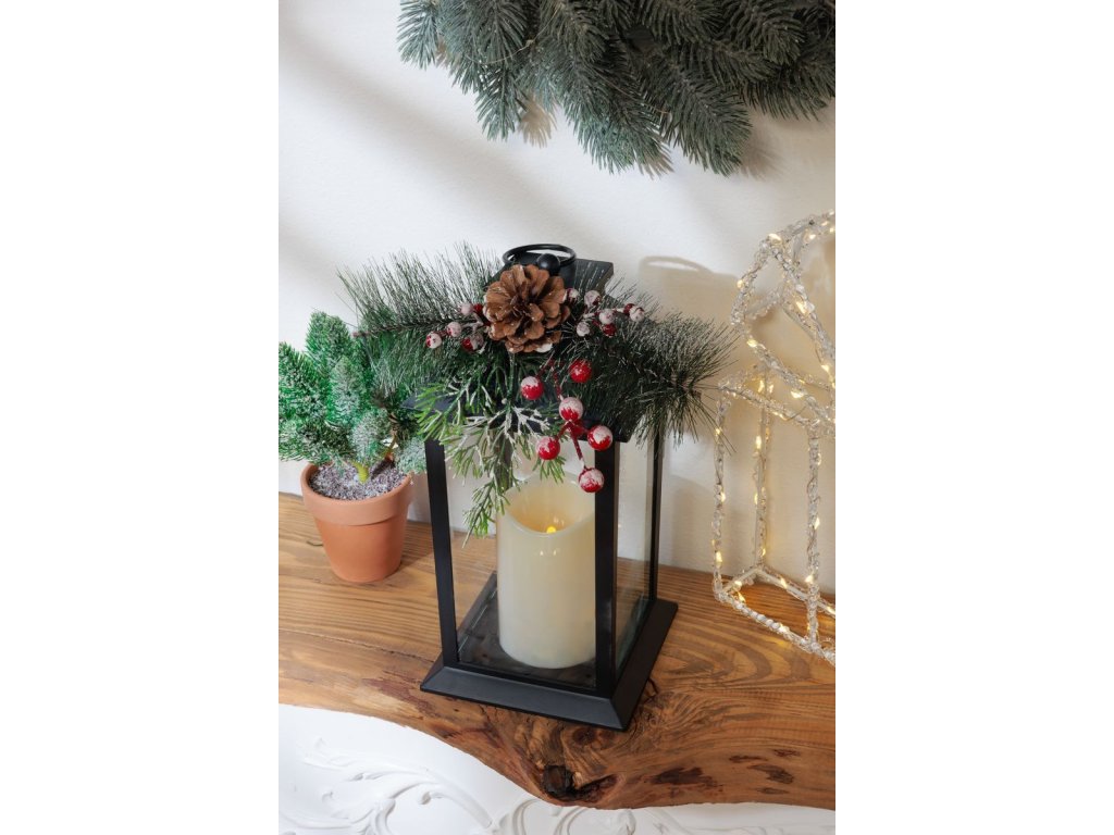 Vytvorte si čarovnú atmosféru počas Vianoc s týmto elegantným lampášom MagicHome Vianoce. Čierny plastový dizajn s detailom v podobe ozdoby z ihličia, bobúľ a šišky dodáva dekorácii autentický zimný vzhľad.