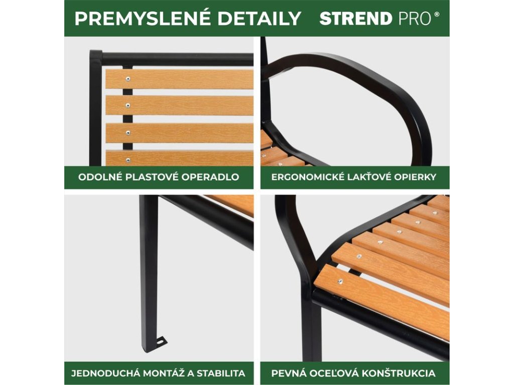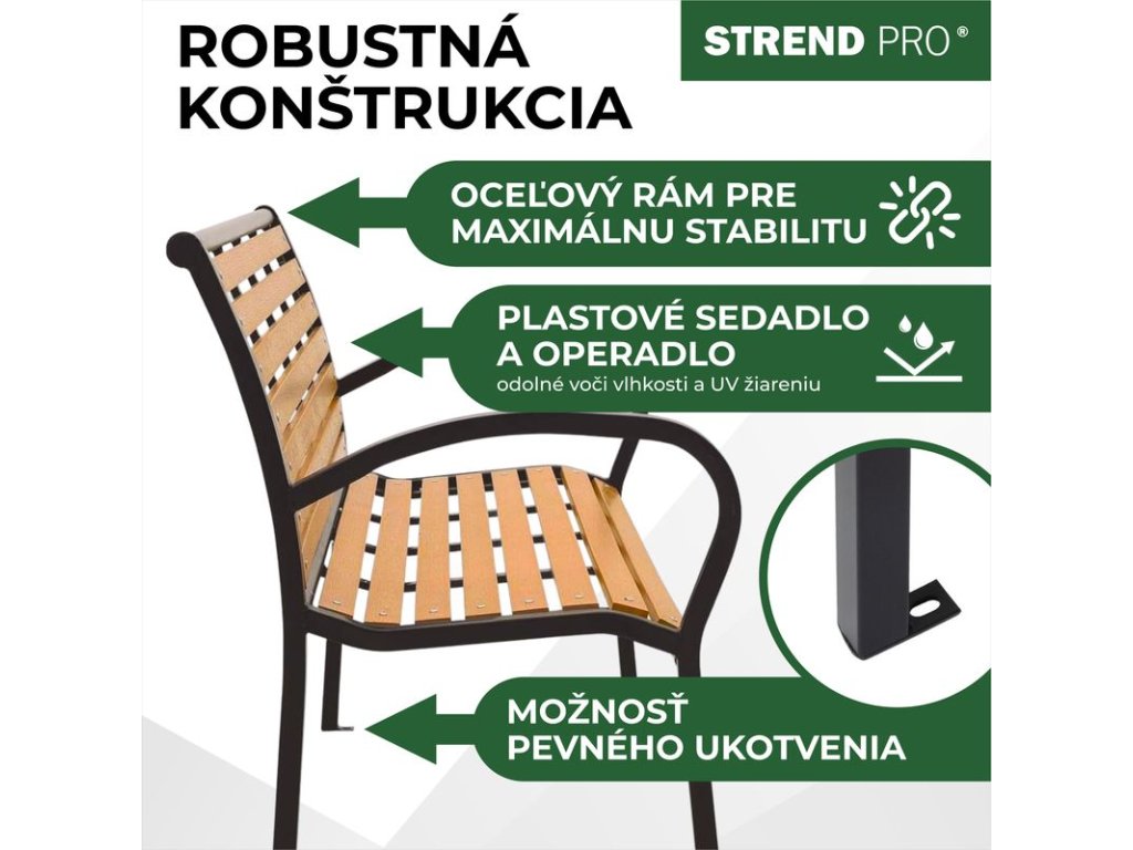 Lavička záhradná KIMBRA, 120x41x82 cm, oceľ/plast