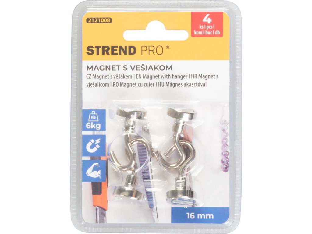 Magnet Strend Pro s vešiakom, 16 mm, 6 kg, 4 ks