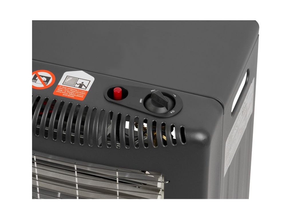 - Bezpečnostné prvky: ochrana proti prevráteniu, poistka pri zhasnutí plameňa
