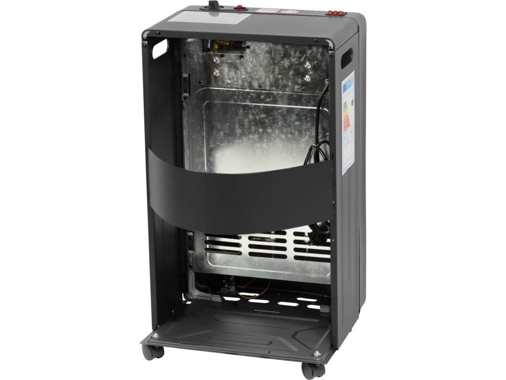 - Kombinovaný ohrev – plynový horák (4,2 kW) + elektrický ventilátor (1,2 kW)