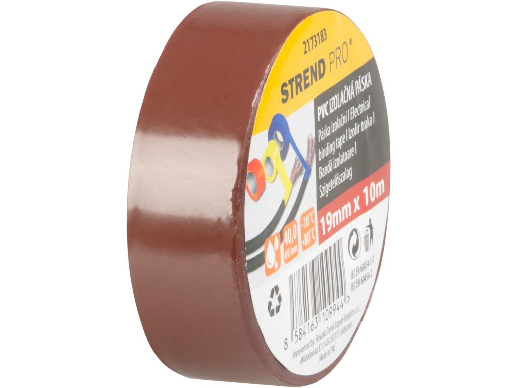 Páska Strend Pro, 19 mm, L-10 m, max. 80°C, 40,0 kV/mm, hnedá, izolačná, lepiaca, PVC, bal. 10 ks