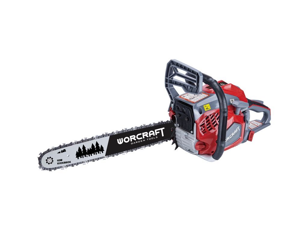 Benzínová píla Worcraft GCS52-20D je určená k rezaniu a píleniu dreva pri rôznych príležitostiach. Či už potrebujete spíliť strom alebo staviate dom, táto motorová píla Vám vždy dobre poslúži. Disponuje dvojtaktným motorom s výkonom 2,2 kW a objemom 49,3 cm3. Je vybavená lištou dlhou 50 cm. Píla dosahuje pri zaťažení maximálne otáčky 11 500 min-1. Na voľnobehu sa pohybujú otáčky okolo 3 000±200 min-1. Palivo potrebné pre správne fungovanie píly sa mieša v určitom pomere z oleja pre dvojtaktné motory a z benzínu s min. oktánovým číslom 95. Do palivovej nádrže sa zmestí 550 ml takejto zmesi. Olejová nádrž pojme 260 ml oleja. S mazaním reťaze sa nemusíte trápiť, keďže v zariadení je zakomponovaný automatický systém mazania reťaze. Navyše palivová a olejová nádrž sú navrhnuté tak, aby bolo palivo spotrebované pred spotrebovaním oleja.