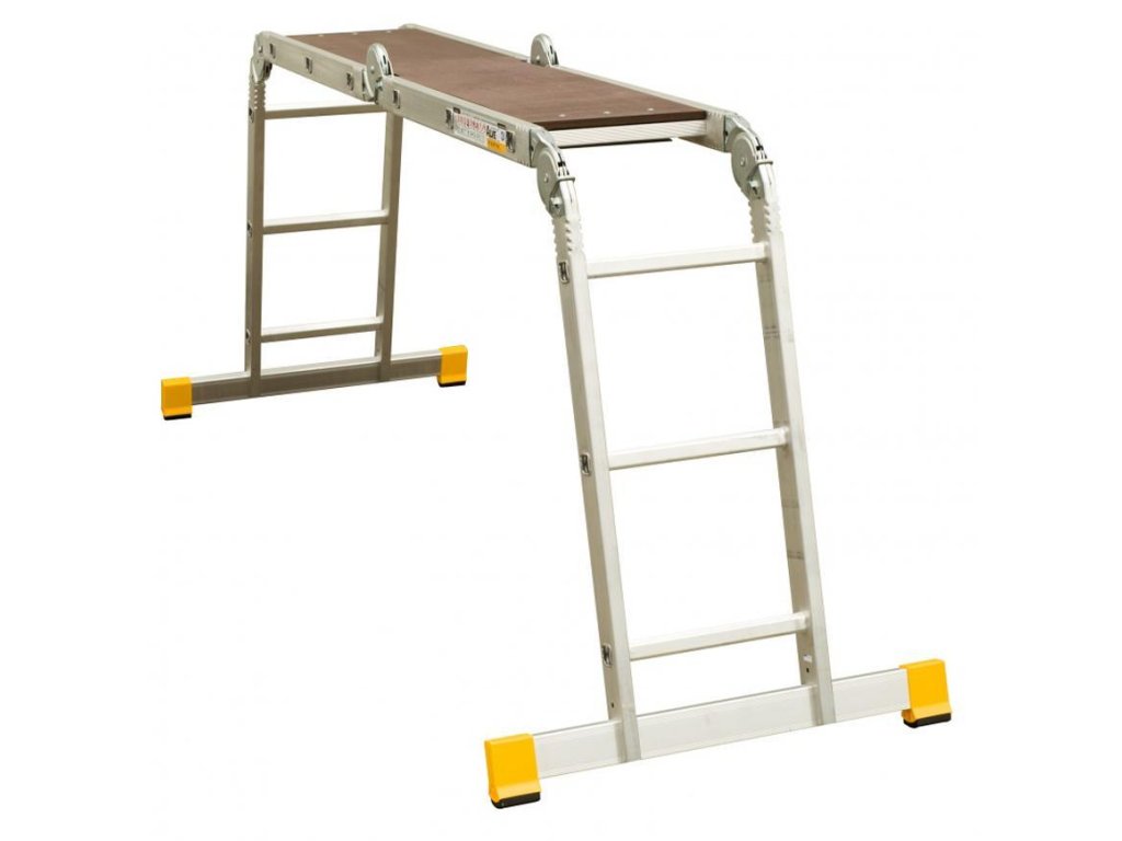 Kĺbový rebrík 4x4 má trojité použitie. Buď vo forme bežného rebríka,štaflí či rebríka postaveného od steny.Nedá sa využiť ako pracovná plošina.