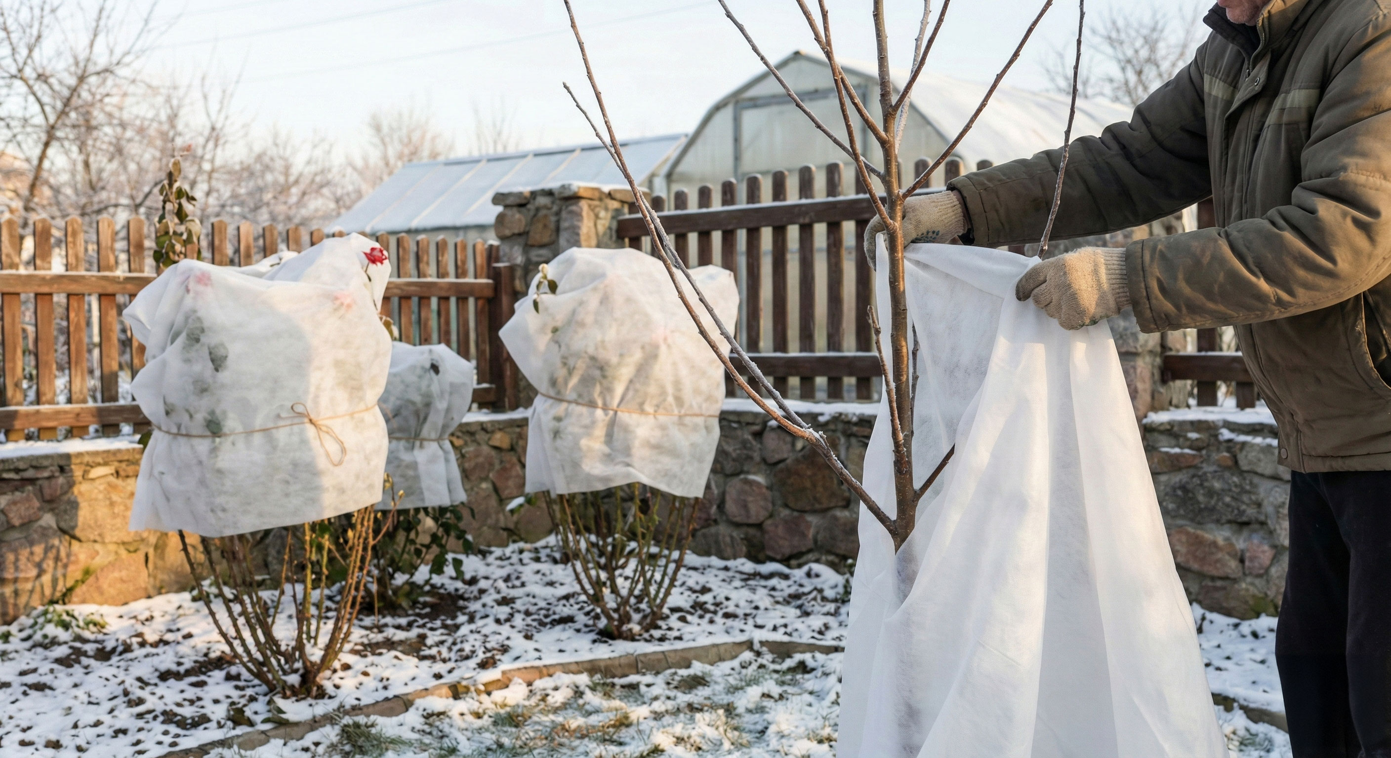 - Prikrývanie: Citlivé rastliny (ruže, mladé stromčeky) nezabudnite prikryť bielou netkanou textíliou. Ochráni ich nielen pred mrazom, ale aj pred zimným slnkom, ktoré môže popáliť listy.
