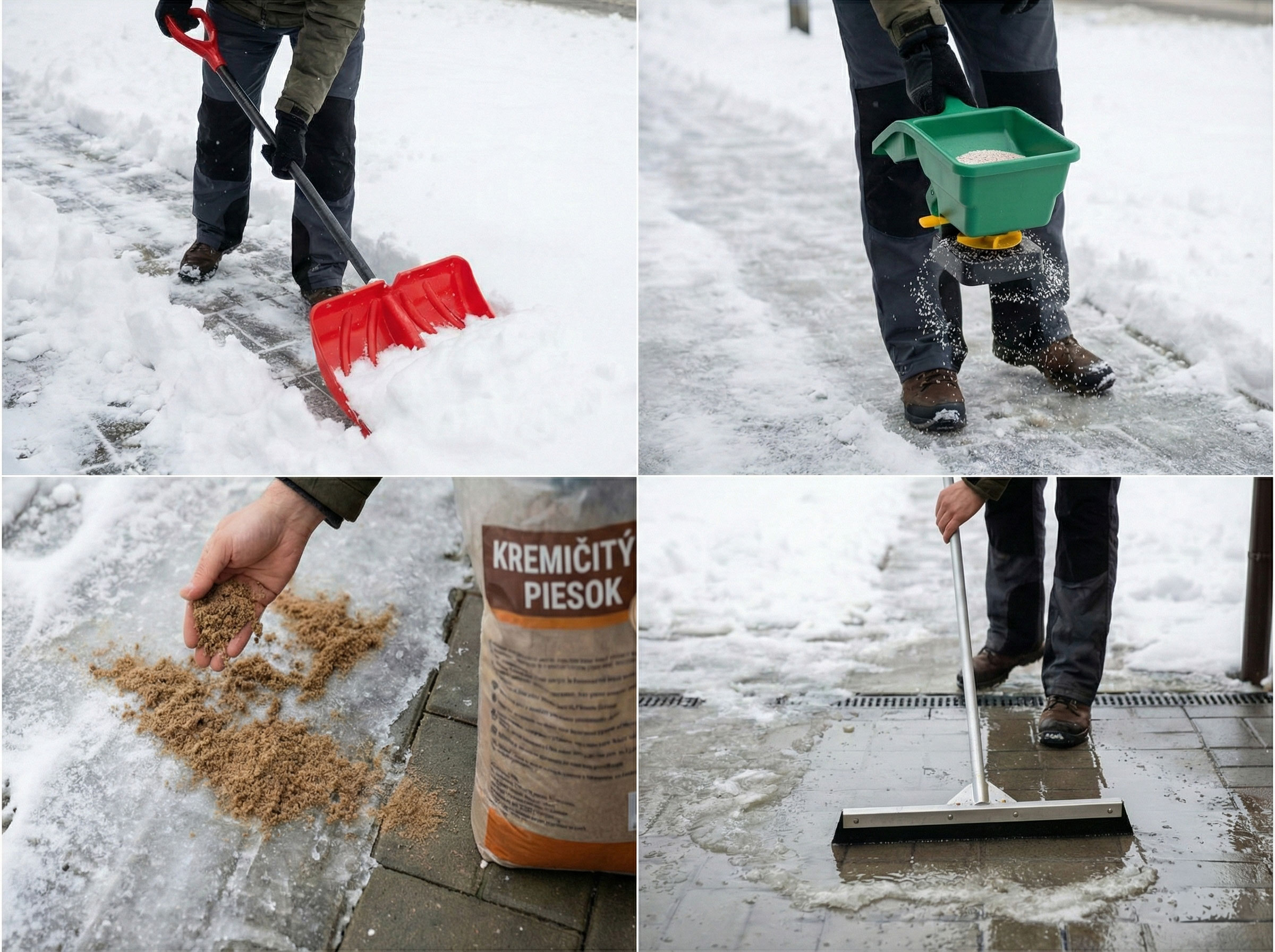 Ak máte novú dlažbu alebo psa, zvážte alternatívy ako zeolit alebo obyčajný kremičitý piesok. Ľad síce nerozpustia, ale vytvoria drsnú protišmykovú vrstvu.