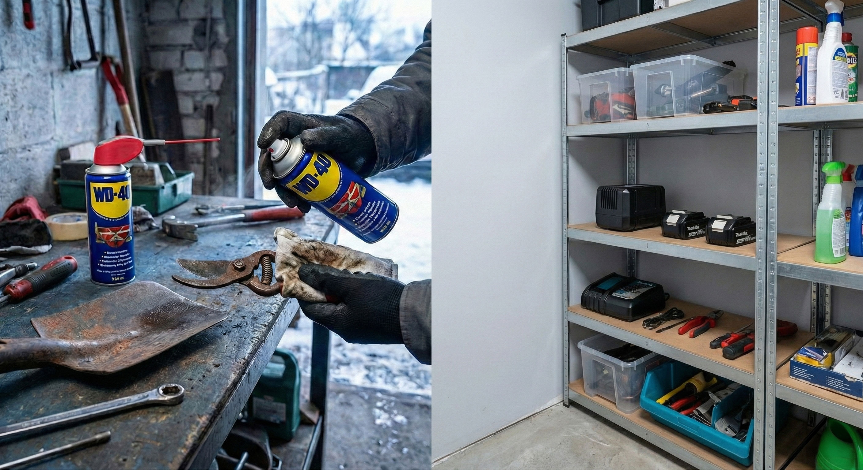 - Ochrana: Všetko kovové náradie, ktoré v zime nepoužívate, pretrite handrou namočenou v oleji (napr. WD-40). Vytvorí ochranný film.