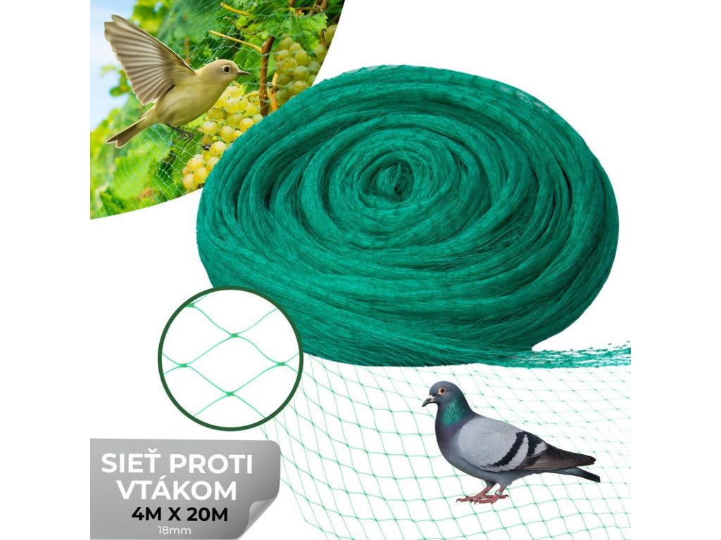- Jemné oká– veľkosť oka 18 mm účinne bráni prenikaniu vtáctva, pričom neobmedzuje rastliny.