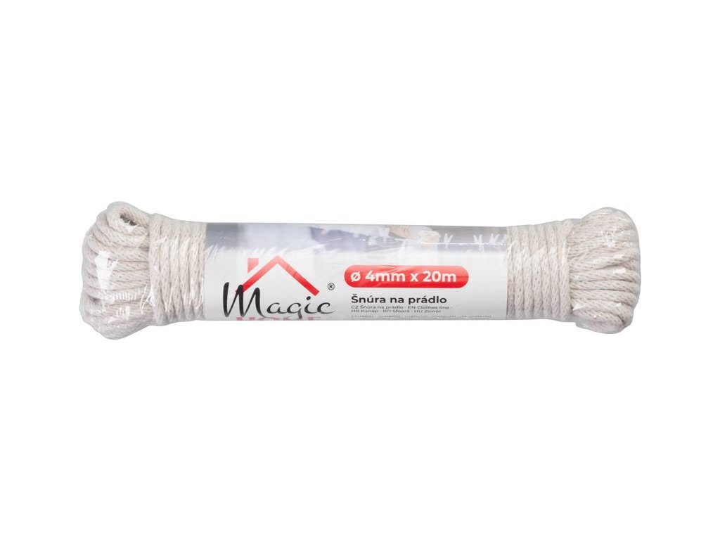 Šnúra na prádlo Cloth-Line slúži na vešanie prádla. Je vyrobená z bavlny. Má rozmer 4 mm x 20 m. Farba je biela.