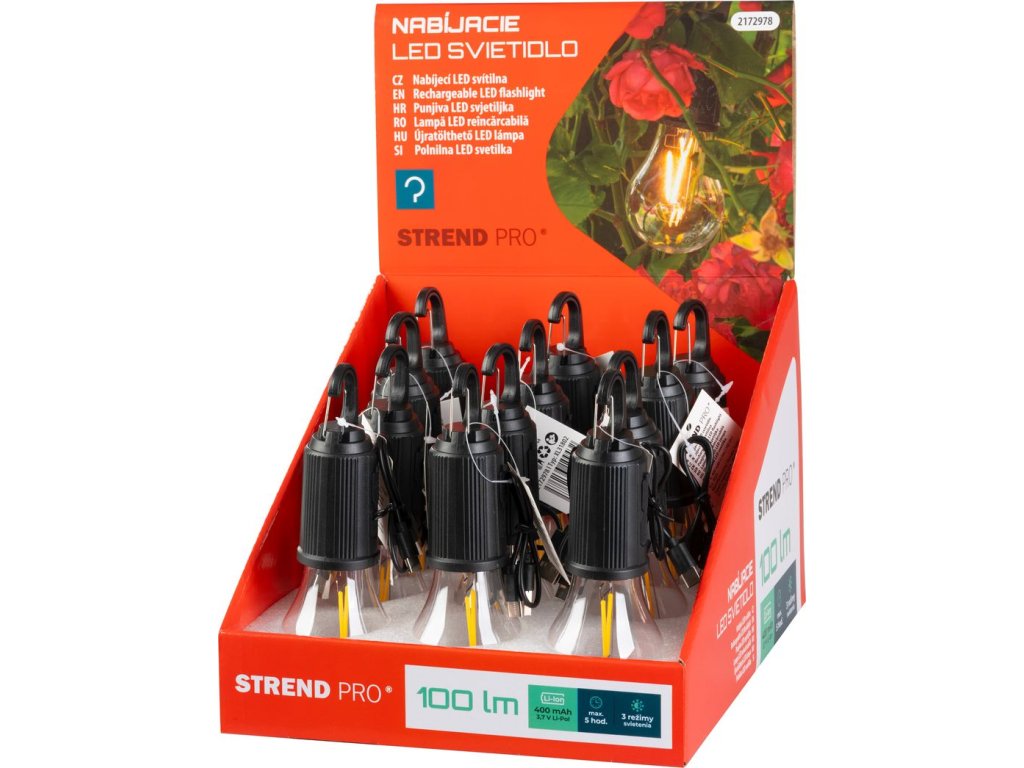 Žiarovka Strend Pro, kempingové, LED, 100 lm, 400 mAh, USB-C nabíjanie, svietidlo, sellbox 12ks