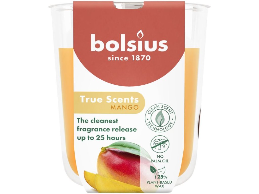 Bolsius True Scents – Vonná sviečka v skle, mango, 80 × 73 mm