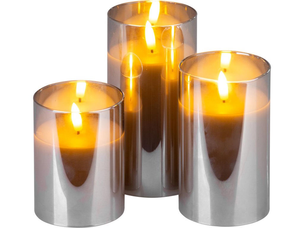 Sviečka MagicHome Vianoce, sada 3 ks, teplá biela, v skle, 3xAAA