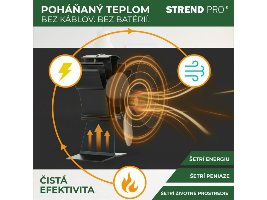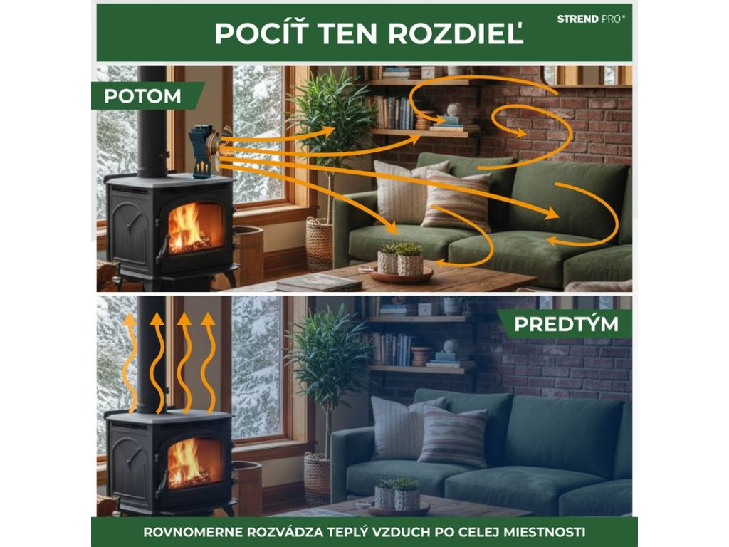 Krbový ventilátor Strend Pro je praktické a ekologické zariadenie určené na zefektívnenie rozptylu tepla z krbových kachlí alebo krbových vložiek. Vďaka termoelektrickému pohonu nevyžaduje pripojenie do elektrickej siete – energiu získava priamo z tepla krbu. Je ideálnym riešením pre domácnosti, ktoré hľadajú spôsob, ako zlepšiť cirkuláciu tepla, znížiť spotrebu paliva a zvýšiť tepelný komfort v miestnosti.