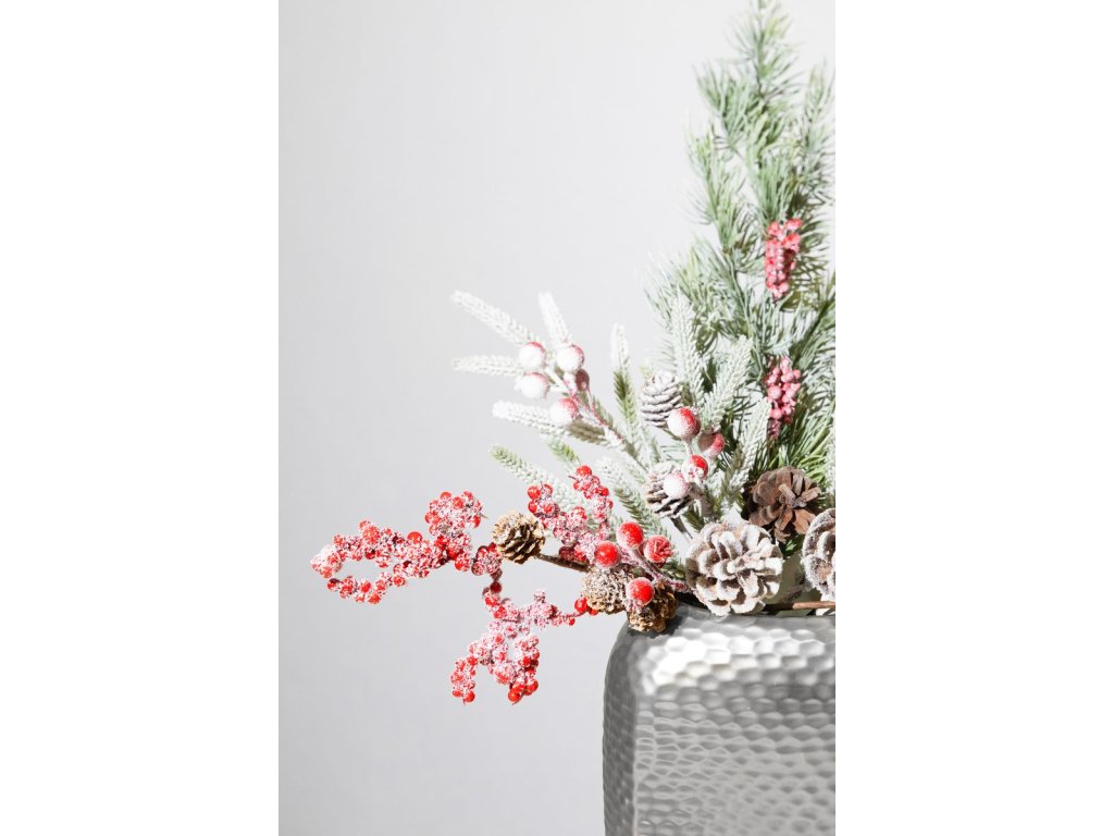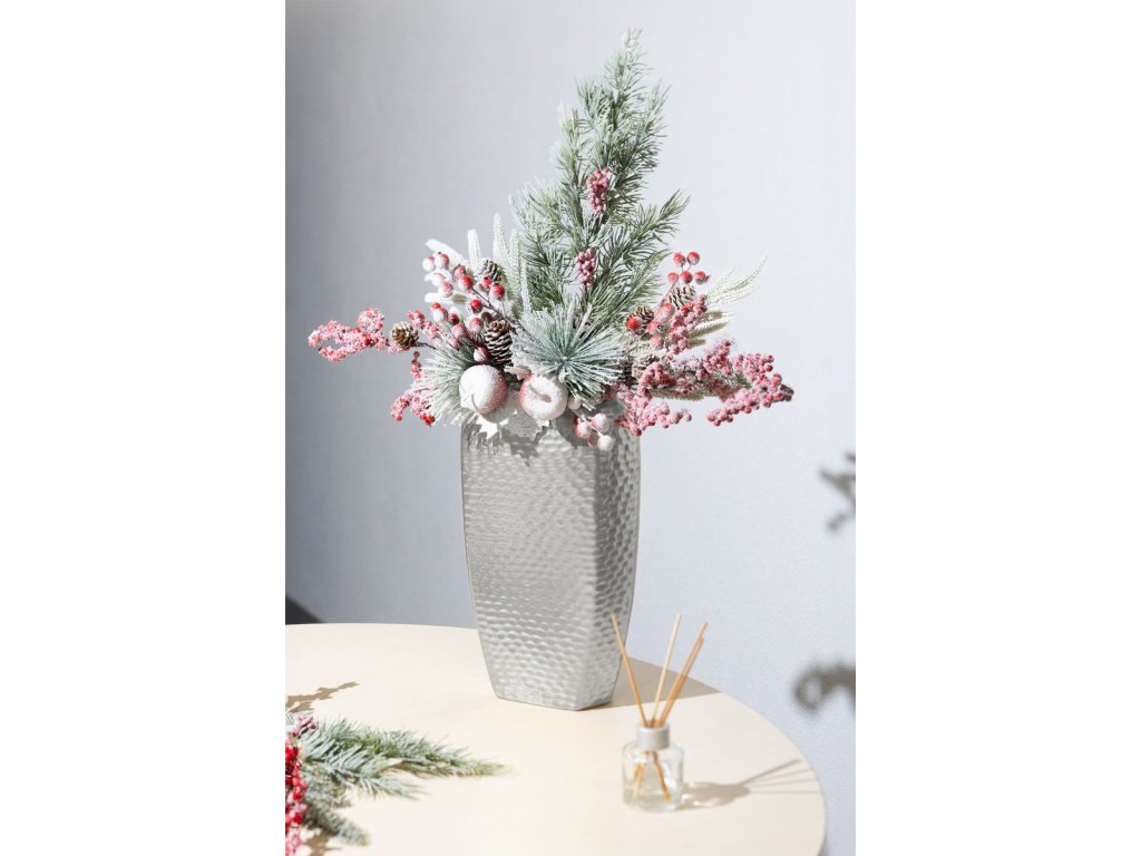 Vianočná vetvička MagicHome Vianoce prinesie do vášho domova pravú sviatočnú atmosféru. Je ozdobená červenými bobuľkami a šiškami, ktoré dodajú vašim dekoráciám prírodný a elegantný vzhľad. Vďaka detailnému spracovaniu pôsobí realisticky a krásne sa hodí ako doplnok k vianočným aranžmánom, vencu či do vázy.