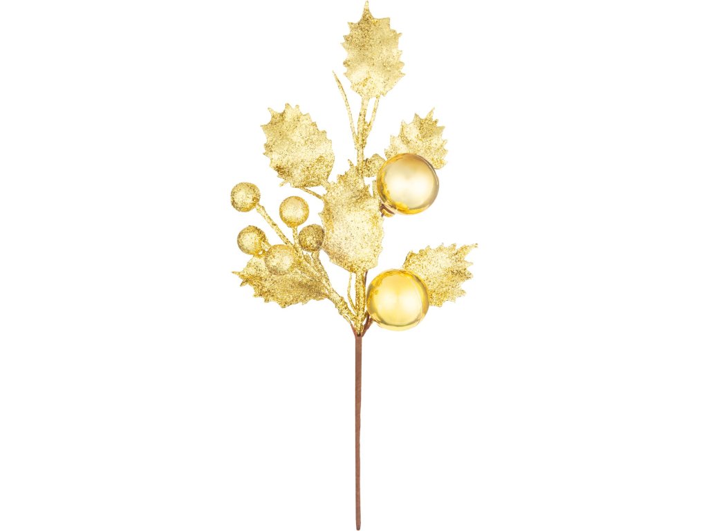 Vďaka realistickému dizajnu a jemnému zlatému odtieňu sa vetvička hodí do klasických aj moderných dekorácií, pričom jej rozmer 24 cm umožňuje jednoduché použitie a kombinovanie s inými ozdobami.