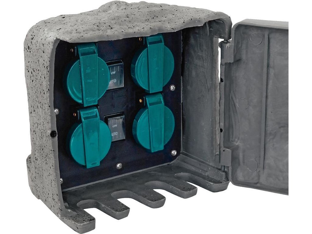 Zásuvka Strend Pro, vodeodolná, záhradná, imitácia kameňa, IP44, skrinka, 4x zásuvka, kábel 3 m