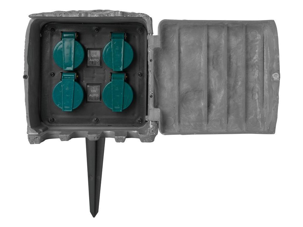 Záhradná zásuvka Strend Pro v imitácii kameňa je ideálna do záhrady alebo na terasu. Disponuje funkciou súmrakového senzoru - za súmraku zapne po 2 zásuvky a za svetla ich opäť vypne. Možnosť pripojiť 4 zariadenie do zásuviek so samozatváracím sklopným krytom. Zásuvku možno upevniť na trávnaté plochy, pevnú zem, drevené terasy, kamenné platne atď. Balenie obsahuje upevňovací kolík a materiál na upevnenie. Dĺžka prípojného káblu je 3 metre. Trieda ochrany: IP44. Maximálna záťaž: 16 A. Priemer vodiča: 1,5 mm2.