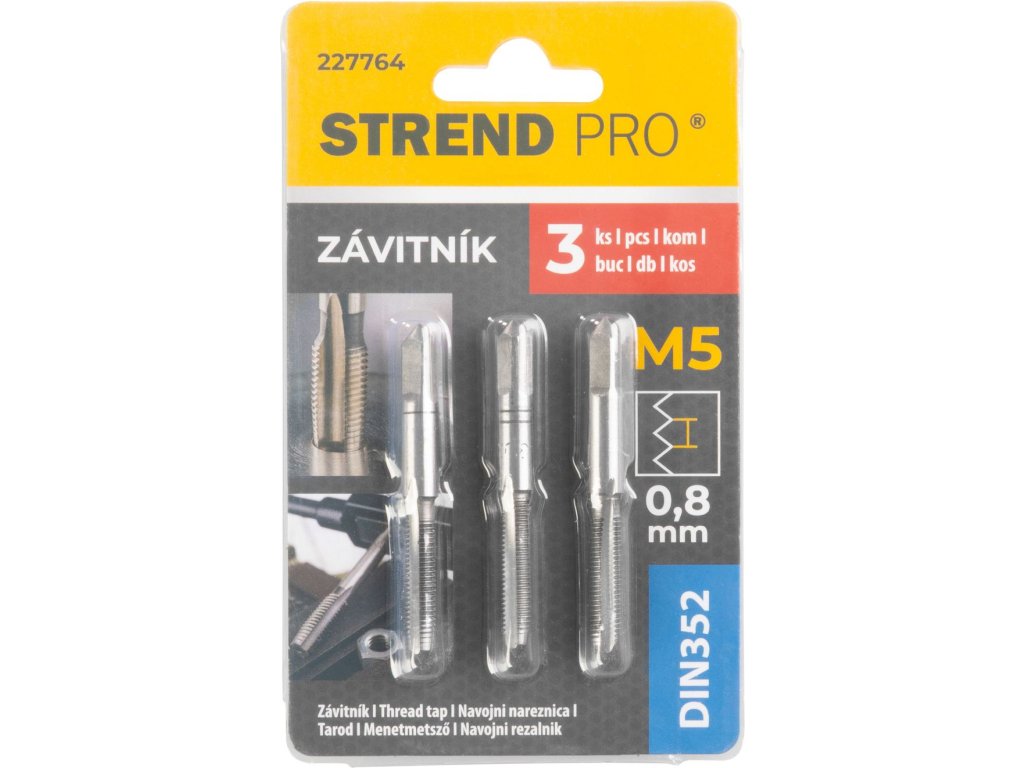 Závitník Strend Pro je určený na rezanie vnútorných závitov s rozmerom M5 a stúpaním 0,8 mm. Vyrobený podľa normy DIN352, zaručuje vysokú presnosť, odolnosť a dlhú životnosť. Balenie obsahuje 3 kusy závitníkov, ktoré sú vhodné na použitie v dielni, priemysle aj pre domácich majstrov.